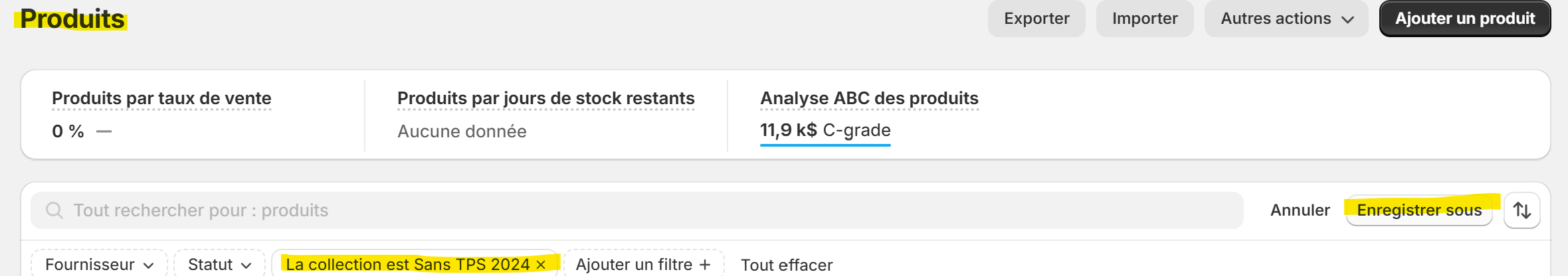 Dernier conseil: documente les changements que tu as fait dans ton fichier de suivi (tu me remercieras en février). Pour faciliter le suivi, tu peux aussi créer une vue personnalisée sur la page des “produits” pour visualiser rapidement tout ce qui se trouve dans ta nouvelle collection.