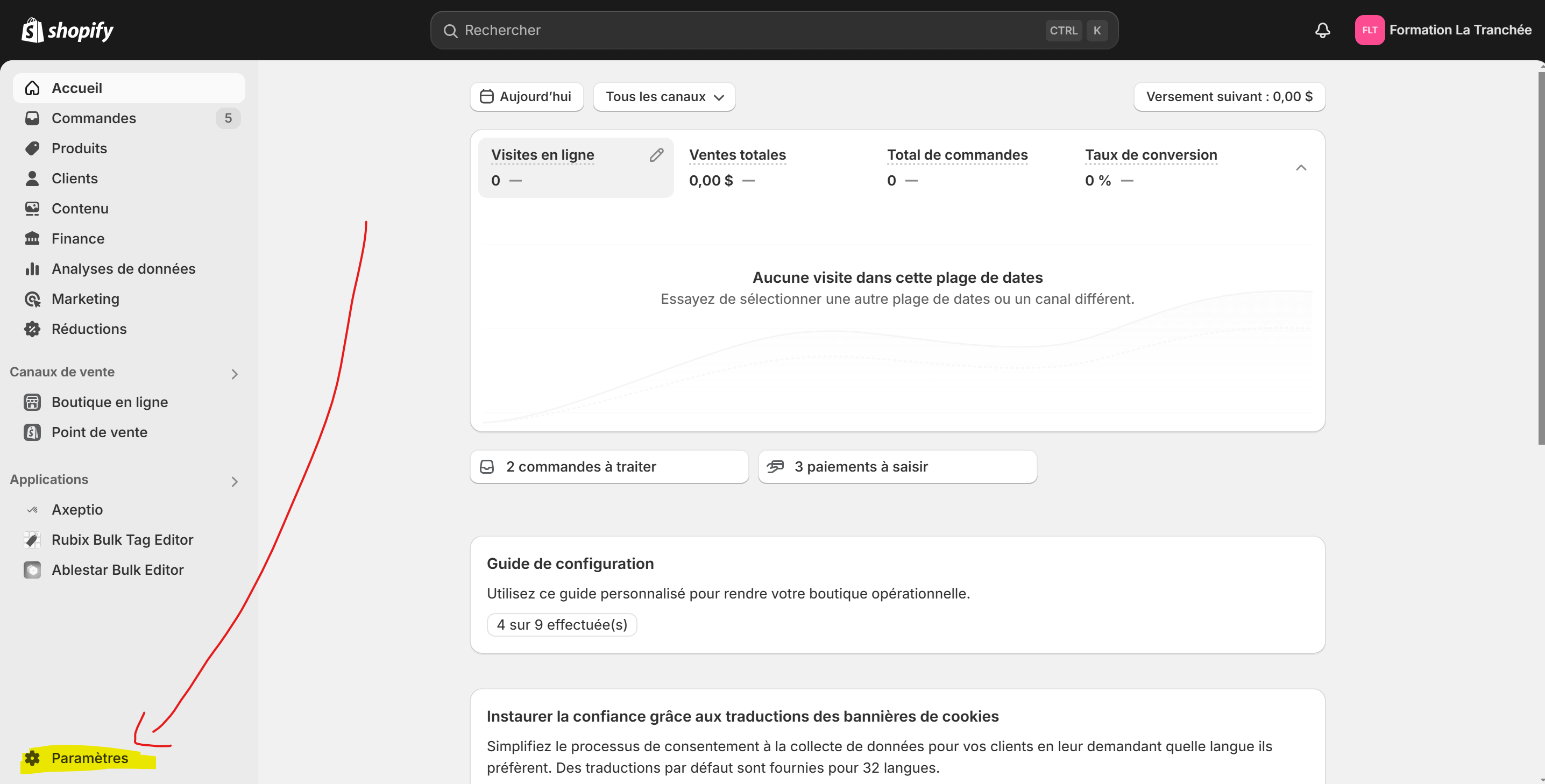 Connecte-toi à ton dashboard de Shopify